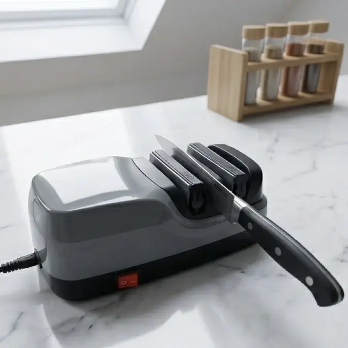 Wirecutter Knife Sharpener is the compact electric sharpener that turns dull knives into precise, safe, and efficient tools. Compatible with various types of knives, it provides quick, even, and effortless sharpening to cook better, save money, and maintain professional results right at home.